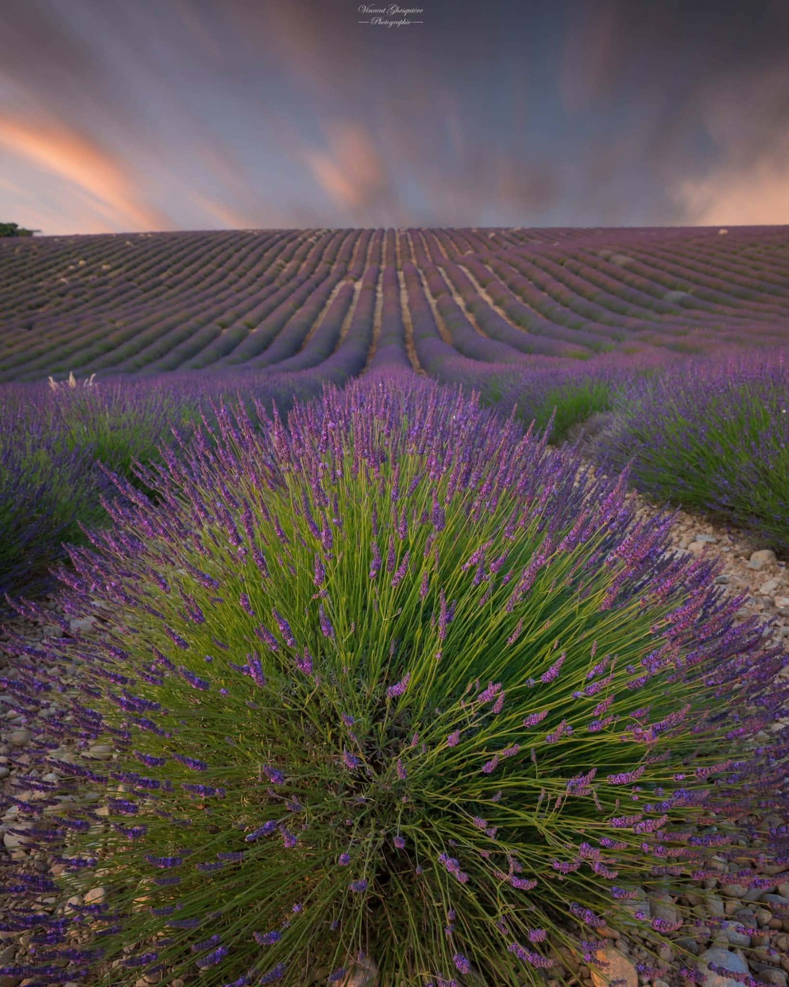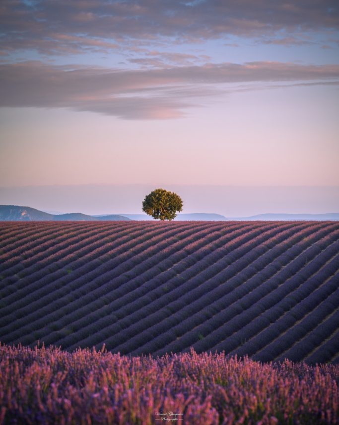 Quand le jour s’efface, la lavande ouvre un chemin vers le lumière. Plateau de Valensole, 30 mai 2025.
