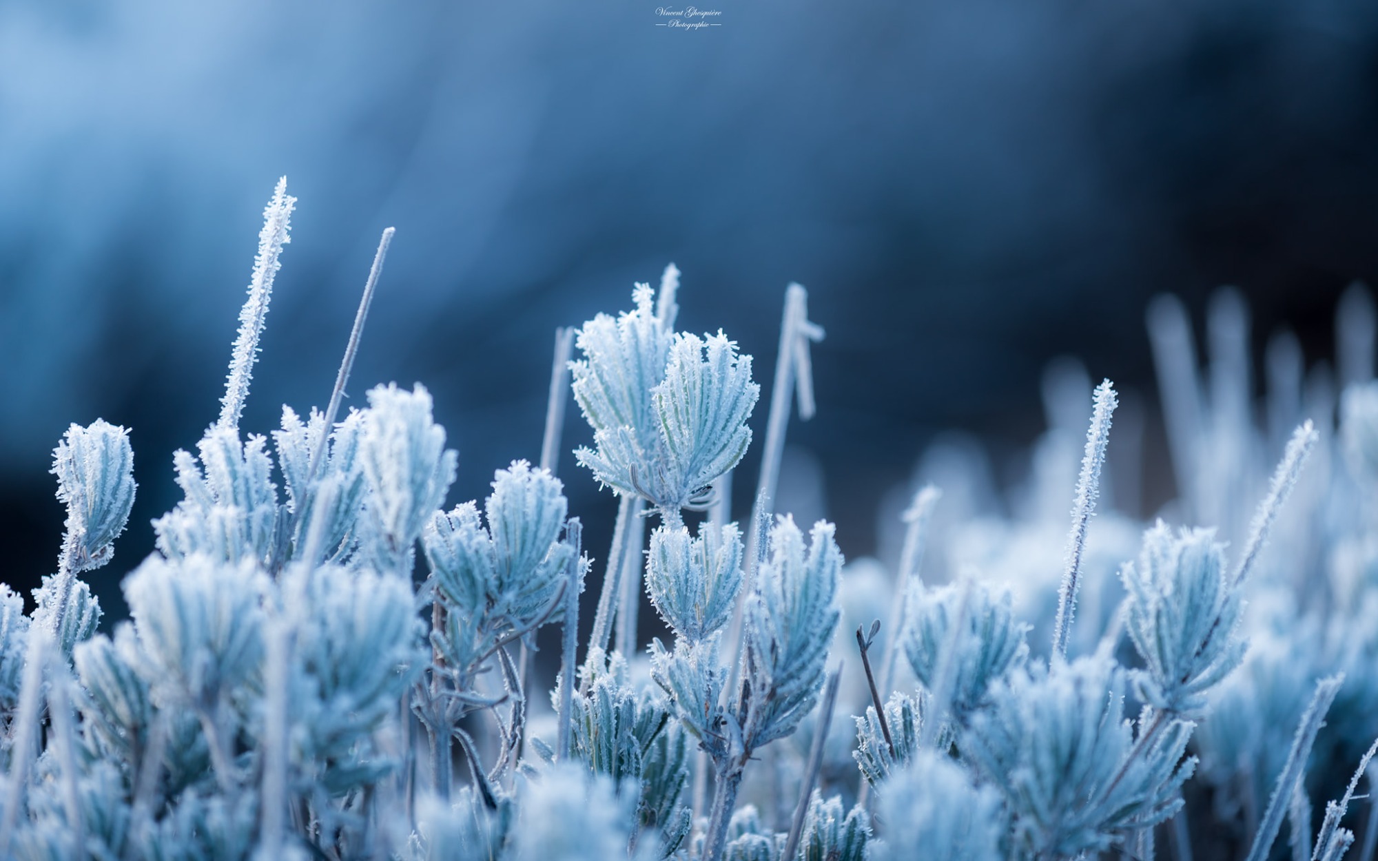 La lavande se fige sous le givre, chaque détail capturant le silence froid du matin. Plateau de Valensole, 3 février 2024.